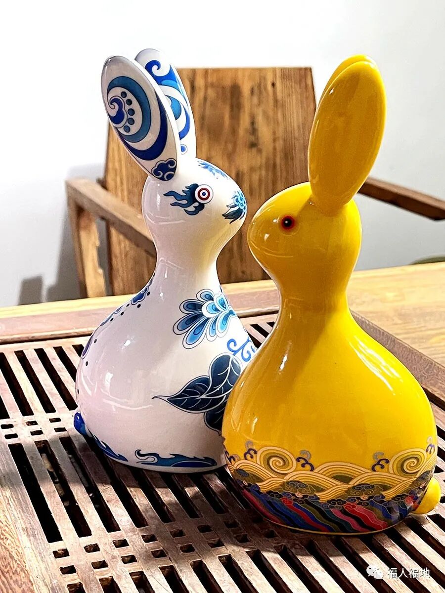【新品上市】福人福地家居创意“吉祥”陶瓷生肖兔摆件